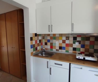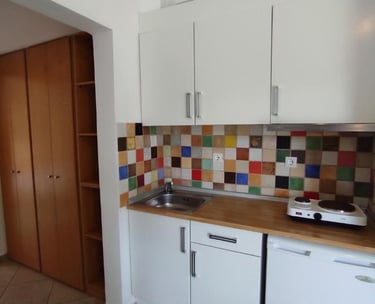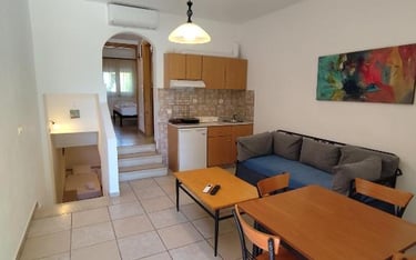Τα διαμερίσματά μας συνδυάζουν μοντέρνο σχεδιασμό με άνεση, δημιουργώντας έναν φιλόξενο χώρο για μια πραγματικά ευχάριστη διαμονή. Κάθε μονάδα διαθέτει πλήρως εξοπλισμένη μικρή κουζίνα, προσφέροντάς σας την ελευθερία να ετοιμάζετε τα γεύματά σας όποτε το επιθυμείτε.